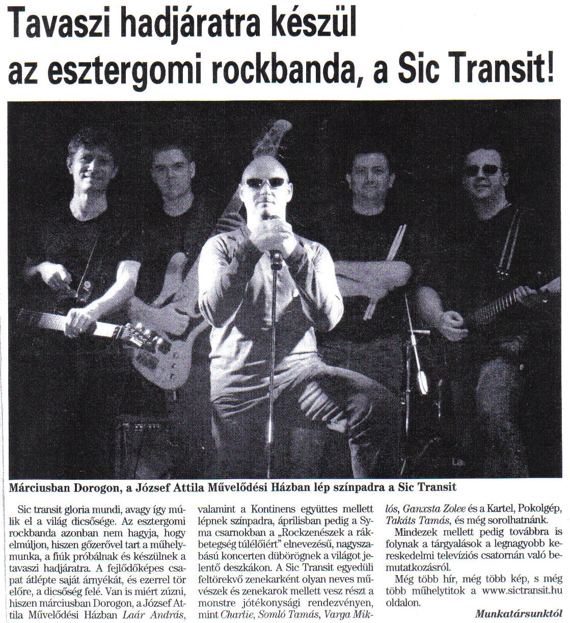 Ezen a helyen gyűjtjük a zenekarunkról a Megyei Hírlap című Komárom-Esztergom megyei napilapban megjelent írásokat.